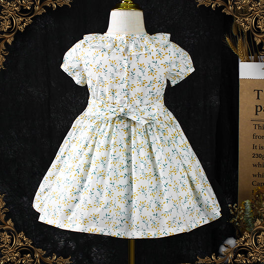 The floral waistbelt dress is perfect for various occasions. It gives a cheerful, fresh, and cuteness vibes. Cotton Dress for Girls Age 1-7 | Yellow & Green Floral Design | Lightweight, and Comfortable Party Wear for Toddlers