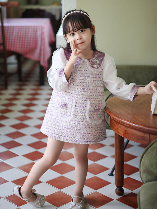 Comfortable Cotton Purple A-Line Dress. Classic Outfit for 1-7 Years. Toddler Party Wear
